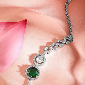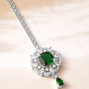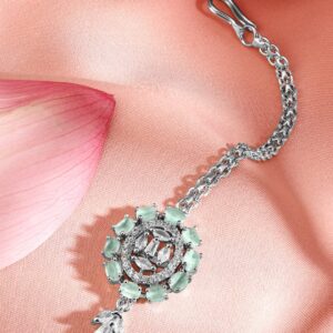 Rhodium Plated Green & White Cubic Zirconia Maang Tikka – Green