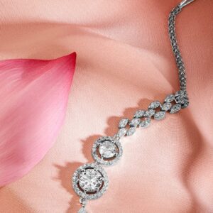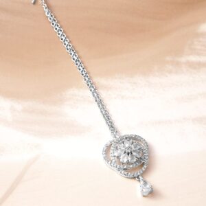 Rhodium Plated White Cubic Zirconia Maang Tikka – Silver