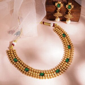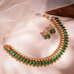 22K Gold-Plated Emerald Green Stone Studded Traditional Necklace Set – Gold