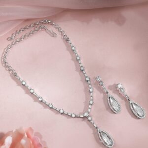 Rhodium-Plated Cubic Zirconia Stone Studded Jewellery Set – Silver