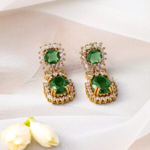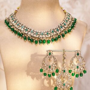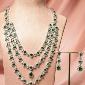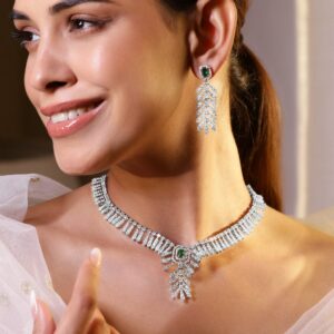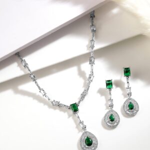 Rhodium Plated Emerald Green & Cubic Zirconia Studded Premium Jewellery Set – Silver