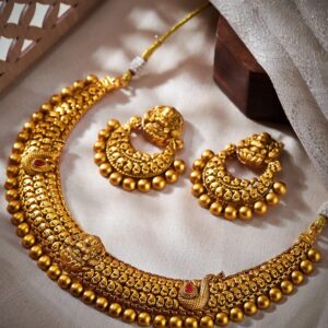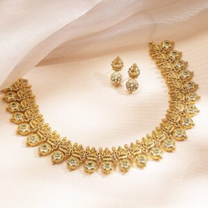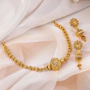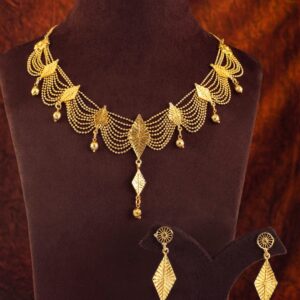 24K Gold Plated Matt Finish Necklace Set With Beautiful Design – Gold