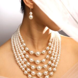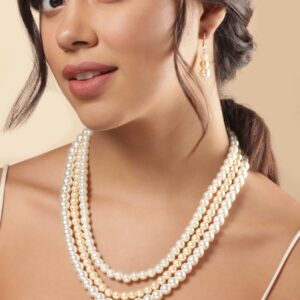 18K Gold-Toned Plated Handcrafted Glossy White Pearl Multi-Layer Necklace Set – Gold
