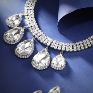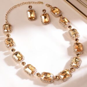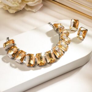 Rhodium-Plated Yellow Crystal Cubic Zirconia Studded Statement Choker Jewelry Set – Yellow