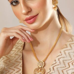 22K Gold Plated Handcrafted Kundan Stone Pendant Set – Gold