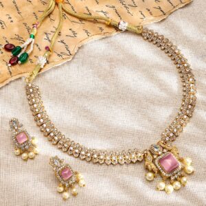 Gold Plated Contemporary Pink Polki Necklace Set – Multicolor
