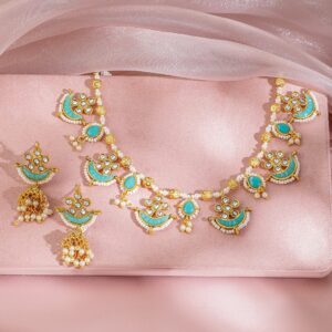 22K Gold-Plated Turquoise Beaded & Kundan Stone Studded Ethnic Traditional Jewellery Set