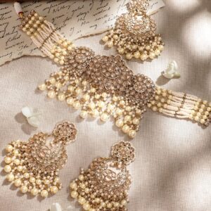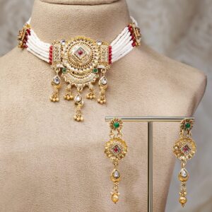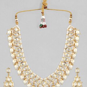 18K Gold-Plated White Kundan Choker Necklace Set With White Beads And Pearls – Gold