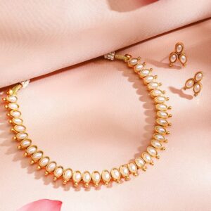 22KT Gold Plated Stylish Pearl Studded Oval Link Design Choker Necklace Set – Gold