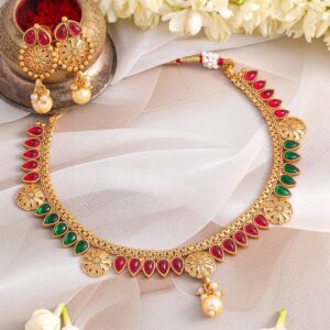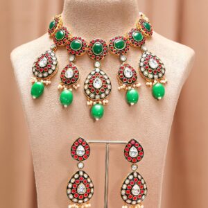22K Gold-Plated Ruby & Emerald Stones Handcrafted Traditional Necklace Set