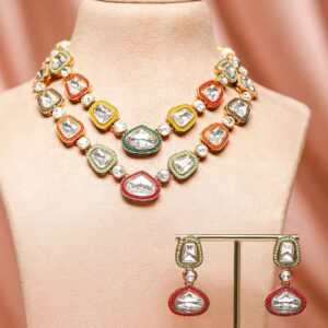 24K Gold-Plated Multicolor Kundan Handcrafted Dual Layered Necklace Set