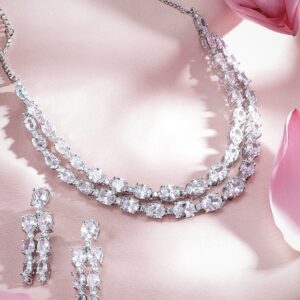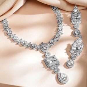 Rhodium-Plated White Cubic Zirconia Studded Statement Luxe Jewellery Set – White