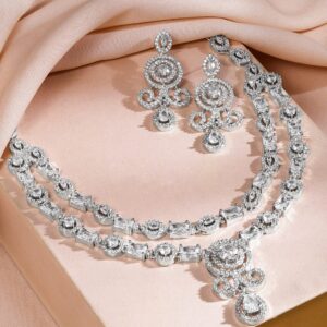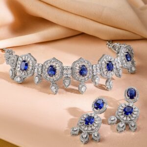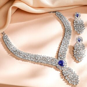 Rhodium Plated Sapphire & Cubic Zicronia Studded Premium Jewellery Set – Silver