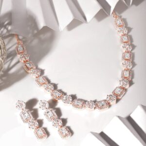 18K Rose Gold-Plated White Cubic Zirconia Studded Jewellery Set – Rose Gold