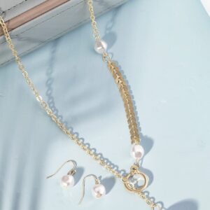 22K Gold-Plated Necklace & Earrings Set with Pearl Beads and Chain Detailing
