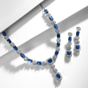 Rhodium-Plated Blue AD & Cubic Zirconia Studded Statement Jewelry Set