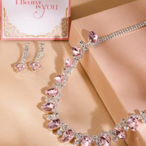 22K Rose Gold-Plated Ruby Pink & White Cubic Zirconia Studded Necklace Set with Earrings – Rose Gold