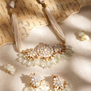22K Gold-Plated Glossy Pearl Beaded Kundan Handcrafted Choker Necklace Set