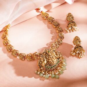 24K Gold Plated Filigree Lakshmi Temple Necklace Set – Gold