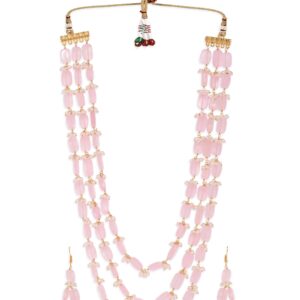 Gold Plated Handcrafted Mirror Pink Beaded Necklace Set – Gold