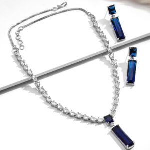 Rhodium-Plated Dark Blue Sapphire & White Cubic Zirconia Premium Jewellery Set – Blue