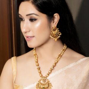 24K Gold Plated Handcrafted Divine Lakshmi Temple Jewelry Set with White Pearl Bead – Gold