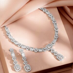 Rhodium Plated Cubic Zirconia Studded Jewellery Set – Silver