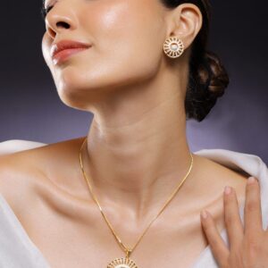 Gold-Plated White CZ Stone Studded Pendent Set – Gold