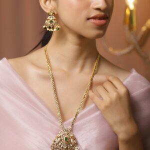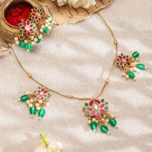 22KT Gold Plated Brass Red Stone Studded Necklace Set – Green