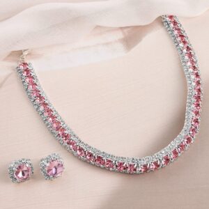 Rhodium Plated Crystal Pink & White Cubic Zirconia Studded Choker Necklace Set – Pink
