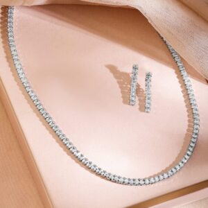 Silver Plated Minimal and Elegant AD Necklace Set – Silver