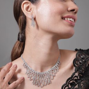 Silver-Plated Cubic Zirconia Studded Premium Jewellery Set – Silver