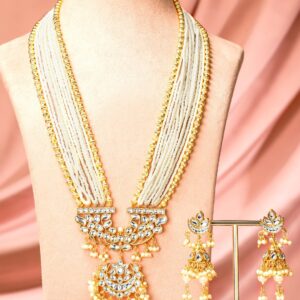 22K Gold-Plated Kundan Studded Multi-Strand Pearl & Gold Beaded Necklace Set for Women