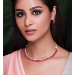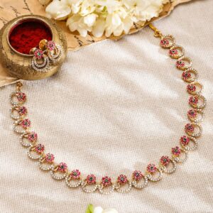 Rhodium-Plated Ruby Pink AD & Cubic Zirconia Studded Necklace Set – Ruby Pink