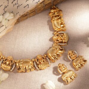 24K Gold Plated Matt Finish Necklace Set With Beautiful Design – Gold