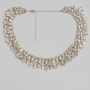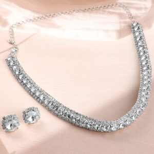 Rhodium-Plated Cubic Zirconia-Studded Choker Jewellery Set – Silver