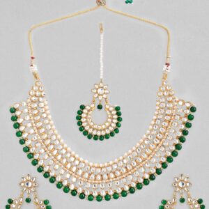 Gold-Toned Green Kundan Studded Necklace Set – Gold
