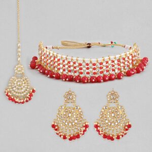Gold-Toned & Red Kundan Studded Jewellery Set – Gold