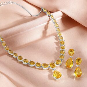 Rhodium-Plated Yellow Sapphire AD & Cubic Zirconia Studded Necklace Set – Silver