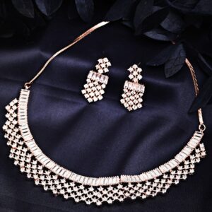 Rose Gold Plated Handcrafted AD Studded Necklace Set – Rose Gold