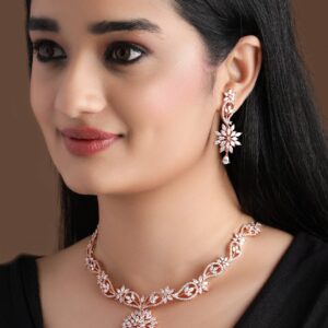 Rose Gold Plated Handcrafted Zircon Stone Studded Floral Necklace Set – Rose Gold