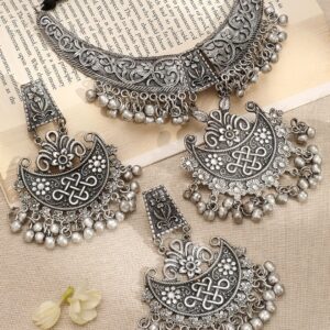 Oxidised Silver Plated Handcrafted Filligree Necklace – Silver