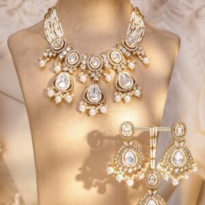 Opulent 22k Gold Plated Kundan Pearl Beaded Jewelry Set – Gold