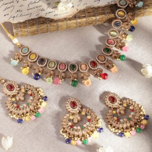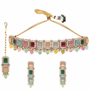 22K Mehndi Gold Plated Multicolor & Reverse AD Studded Choker Set – Multicolor