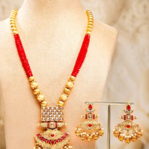 24K Gold Plated Handcrafted Ruby Stone Temple Necklace Set – Gold