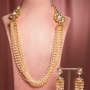 Majestic Fusion White Pearl with Kundan Necklace Set – Gold