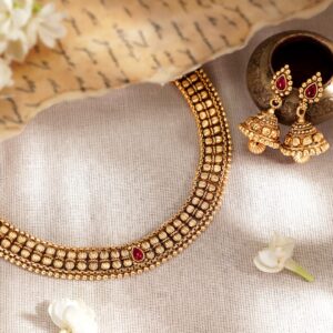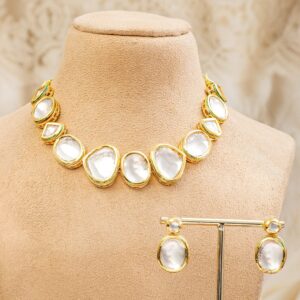 22K Gold-Plated White Kundan Studded Handcrafted Choker Necklace Set