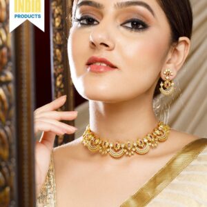 18K Gold plated handcrafted pearl beaded choker necklace set – Gold