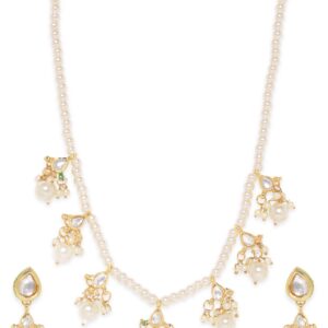 24K Gold-Plated Pachi Kundan Studded Necklace & Earrings Set with Pearl & Green Bead Details