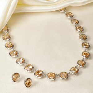 Rhodium Plated Light Gold Cubic Zirconia Gemstone Statement Necklace – Silver